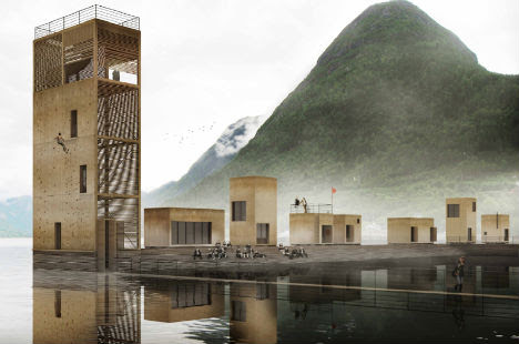 The concept, which won third place in a competition to design a new masterplan for the city, is based upon small blocky buildings including a rolling hotel, public bath and concert hall. Because the town is full of tourists in the summer but becomes very cold and dreary in the winter, such a scheme would allow the entire town to take full advantage of warm weather by spreading out.